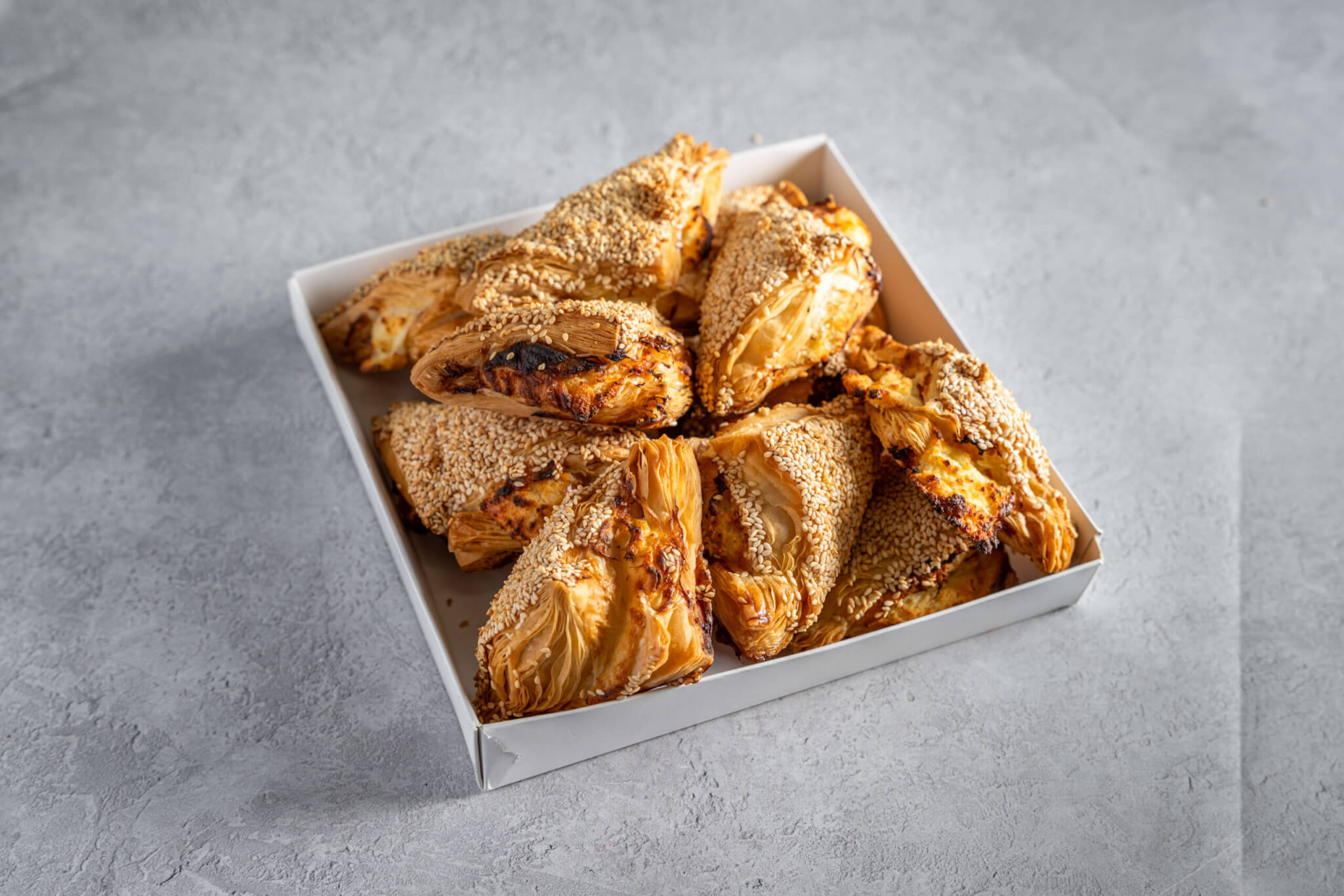 מאפי עלים במילוי גבינות עשיר – הכל בעבודת יד ובהתפחה מוקפדת. פריכים מבחוץ ורכים ומלאים מבפנים. כולל 12 יחידות. מתאים לאירוח חלבי או בראנץ’.