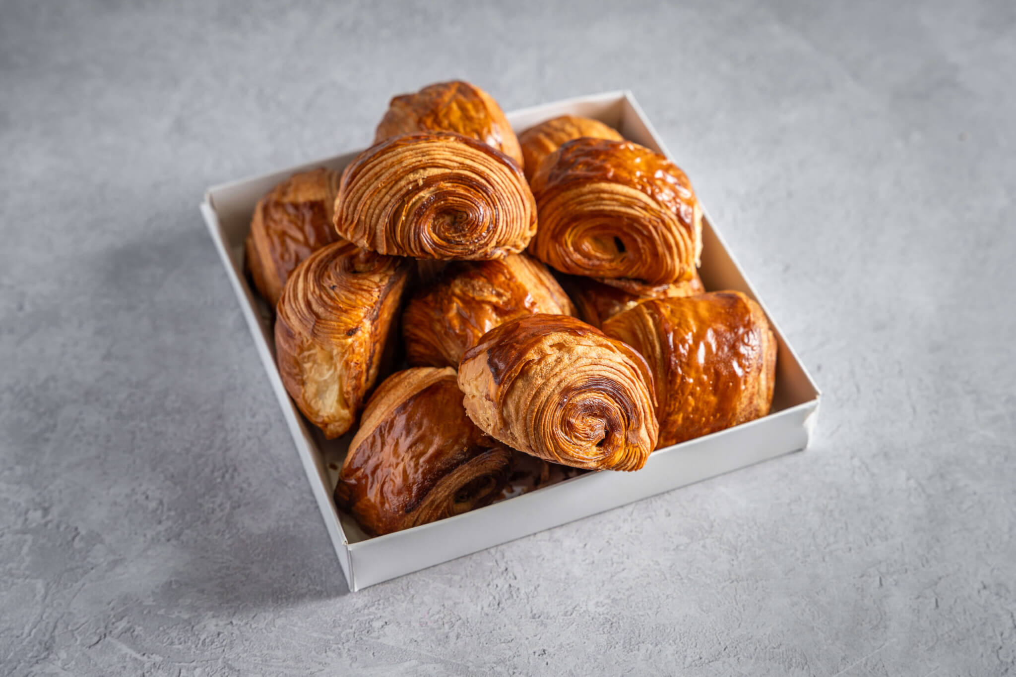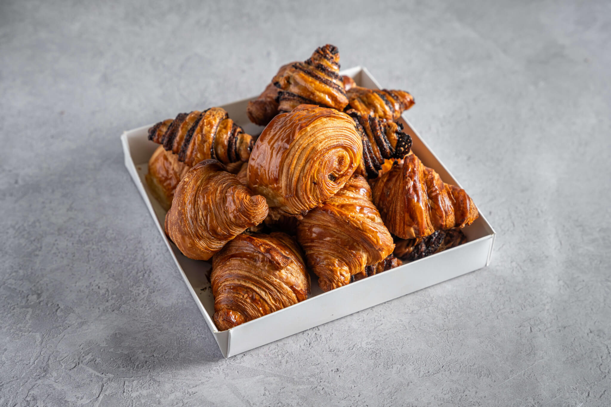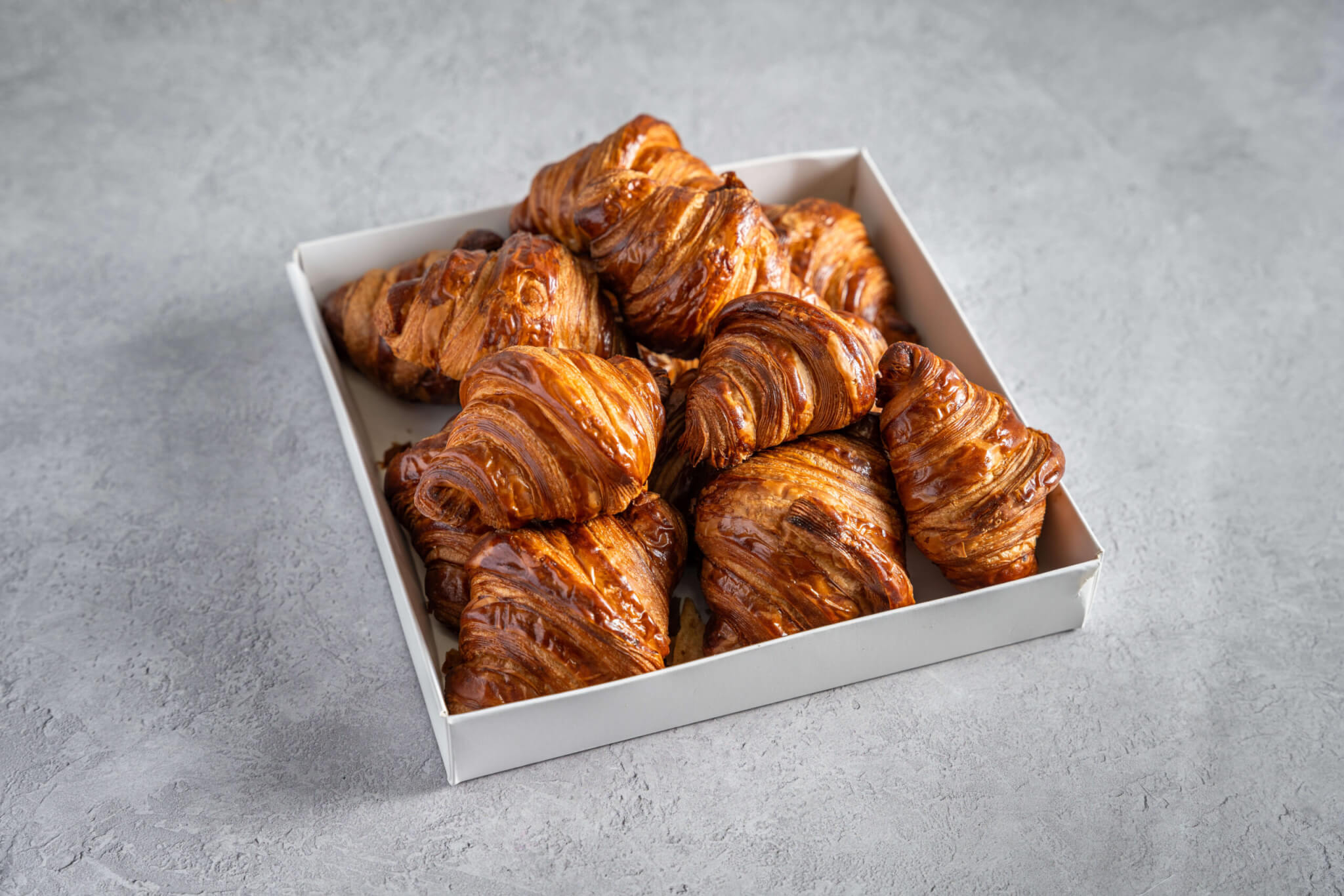 קרואסוני חמאה קלאסיים, עלים ודקיקים, בהתפחה ארוכה – הכל בעבודת יד. חמאתיים, פריכים מבחוץ ורכים מבפנים. כולל 12 יחידות. מושלם לאירוח בוקר, ישיבות ומפגשים משפחתיים.